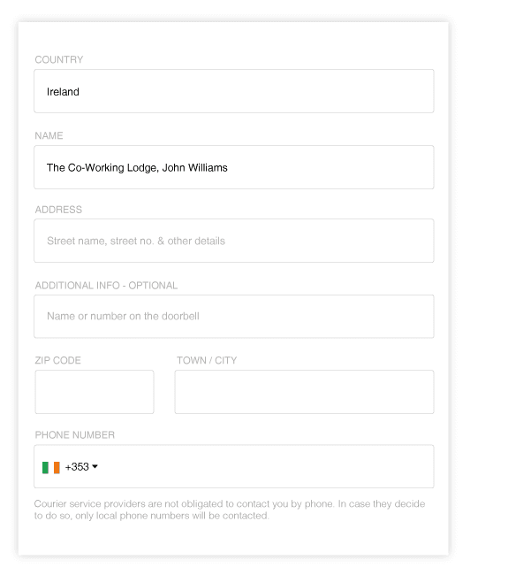 Opening hours. Always keep in mind the opening hours of your coworking space. The courier cannot deliver the parcel when the coworking space is closed.