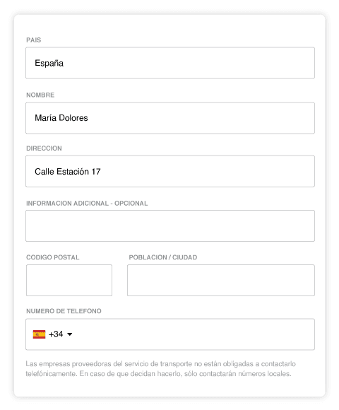 Al enviar paquetes a una dirección temporal, es esencial que rellenar correctamente la dirección. Preste atención a las siguientes cosas.